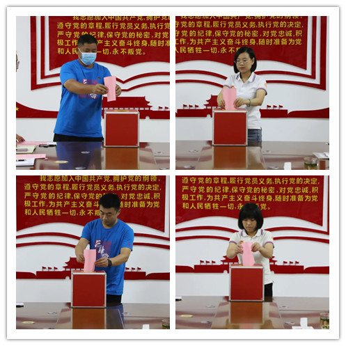 會上,黨支部書記張勇分別介紹了張文華等入黨申請人的基本情況和平時工作表現(xiàn)。會議按照民主、公平、公正的原則,參會黨員和群眾代表通過無記名投票的方式對張文華等同志的入黨申請廣泛征求黨內(nèi)外群眾意見,并分別發(fā)出推薦表。通過全體黨員和群眾代表的推薦選票,大家一致同意張文華等同志成為入黨積極分子候選人。