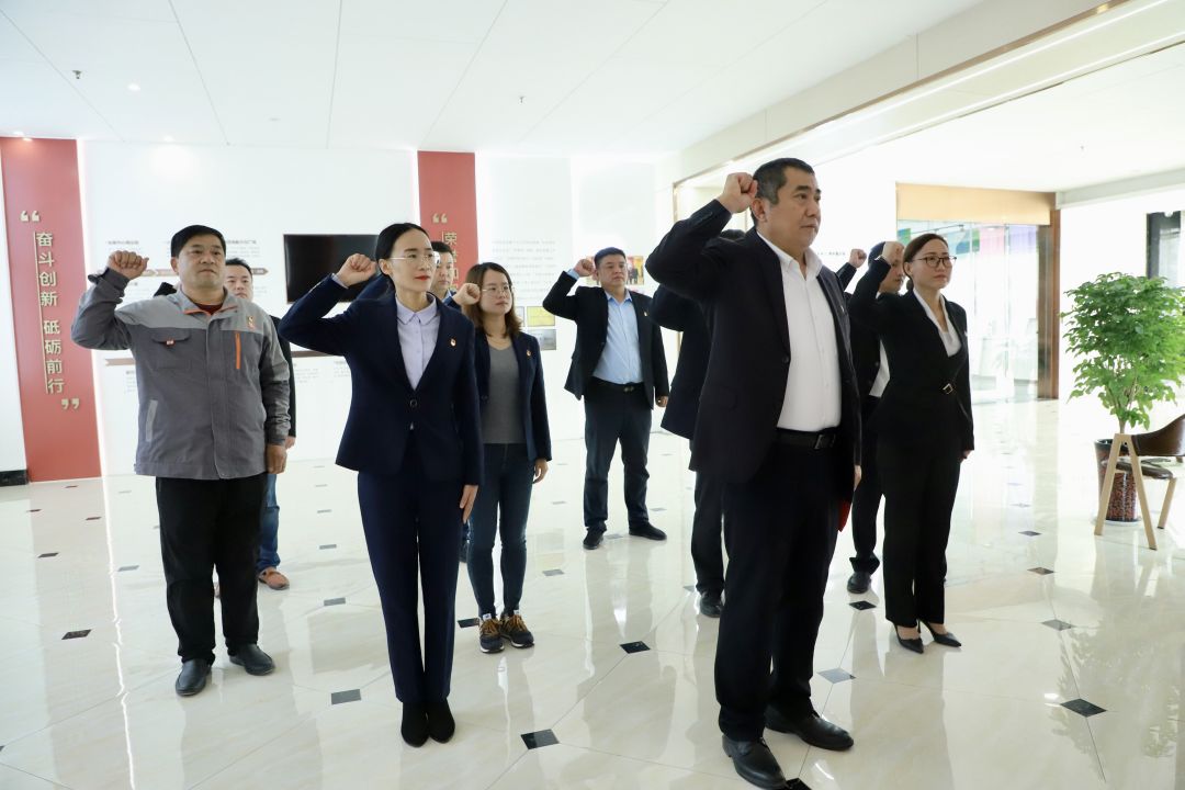 開幕會后,在各黨支部書記的帶領(lǐng)下,三個黨支部的黨員莊嚴(yán)地面向黨旗重溫入黨誓詞,一句句錚錚誓言,鏗鏘有力,振奮人心,深切表達(dá)了全體黨員對黨的忠誠堅定,深刻詮釋了全體黨員建功新時代的迫切愿望。