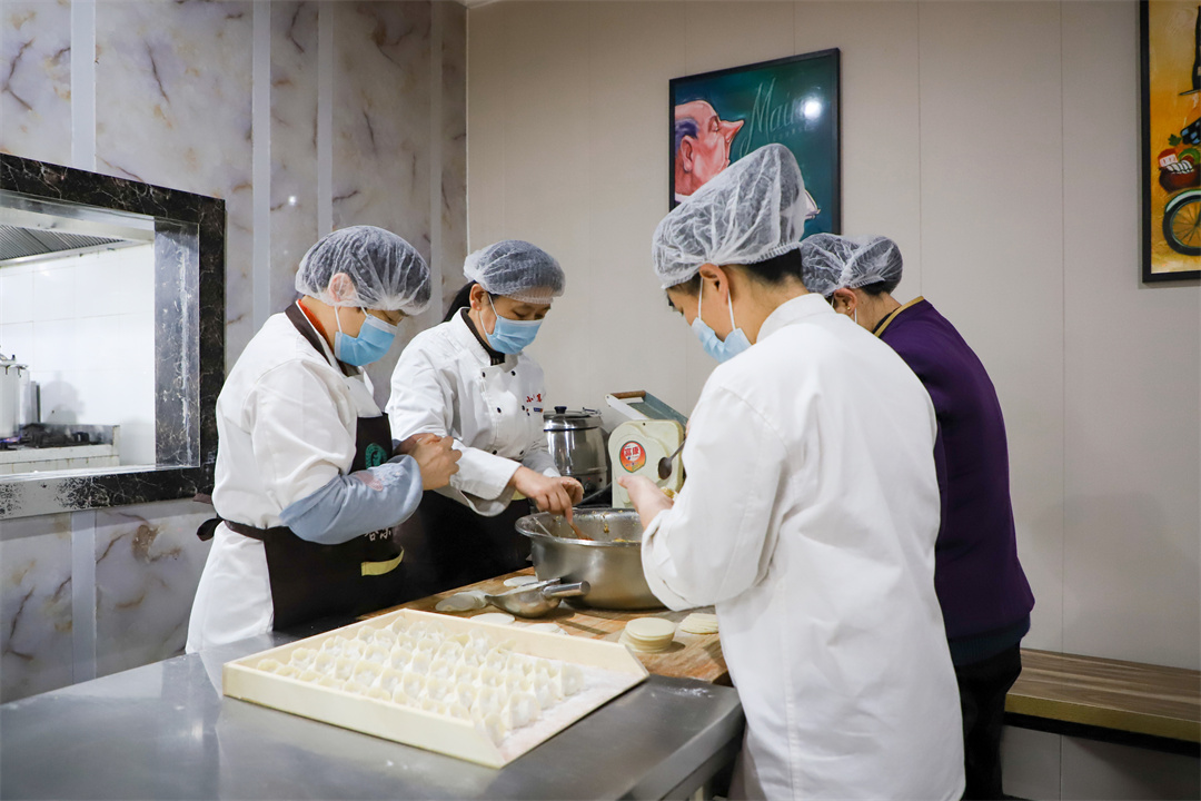 幸福的餃子 吉祥的餡兒。長田實業(yè)旗下“田小廚”的家人們放棄休息時間,分配好任務(wù)各司其職,和面、切菜、調(diào)餡,包制了2000多個大餡水餃,這圓潤飽滿的餃子寓意著美好與幸福,伴著長田人滿滿的情意,讓老人們暖胃更暖心。