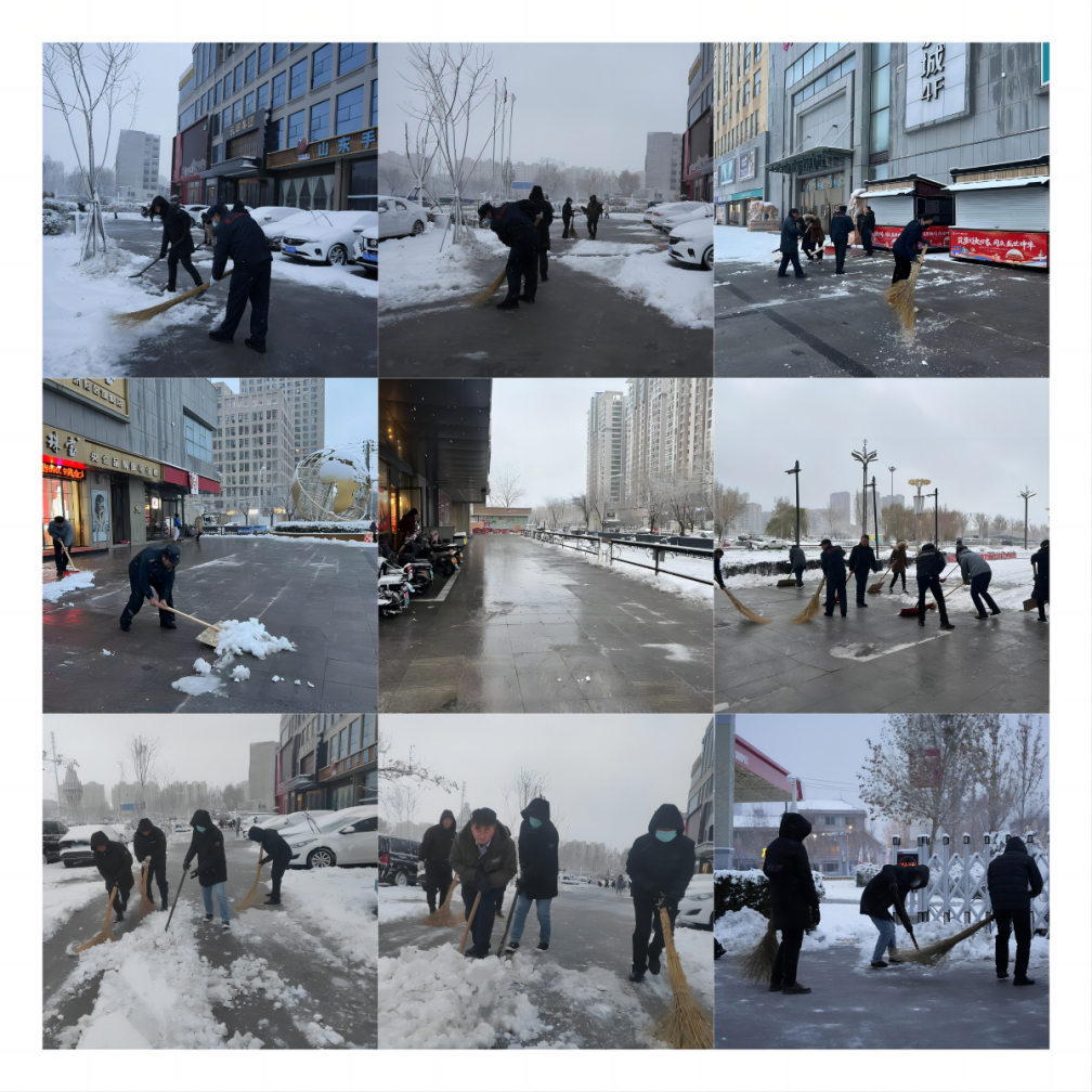 12月14日,寒潮來襲,風(fēng)雪齊至,給城市增添美景的同時(shí),也給市民的出行和道路安全帶來一定的困擾和影響。為維護(hù)良好城市環(huán)境秩序、保障道路交通暢通和市民出行安全,長田實(shí)業(yè)各部門迅速響應(yīng),以雪為令,聞雪而動(dòng),積極開展掃雪除冰行動(dòng)。